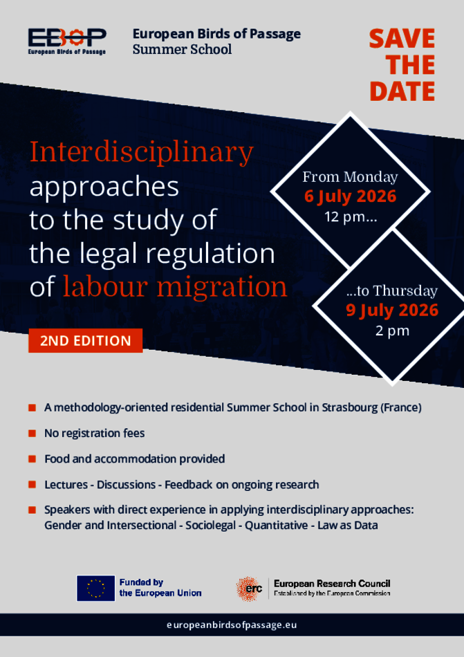 L'équipe du projet European Birds of Passage organise la deuxième édition de son école d'été sur le thème « Interdisciplinary approaches to the study of the legal regulation of labour migration ».