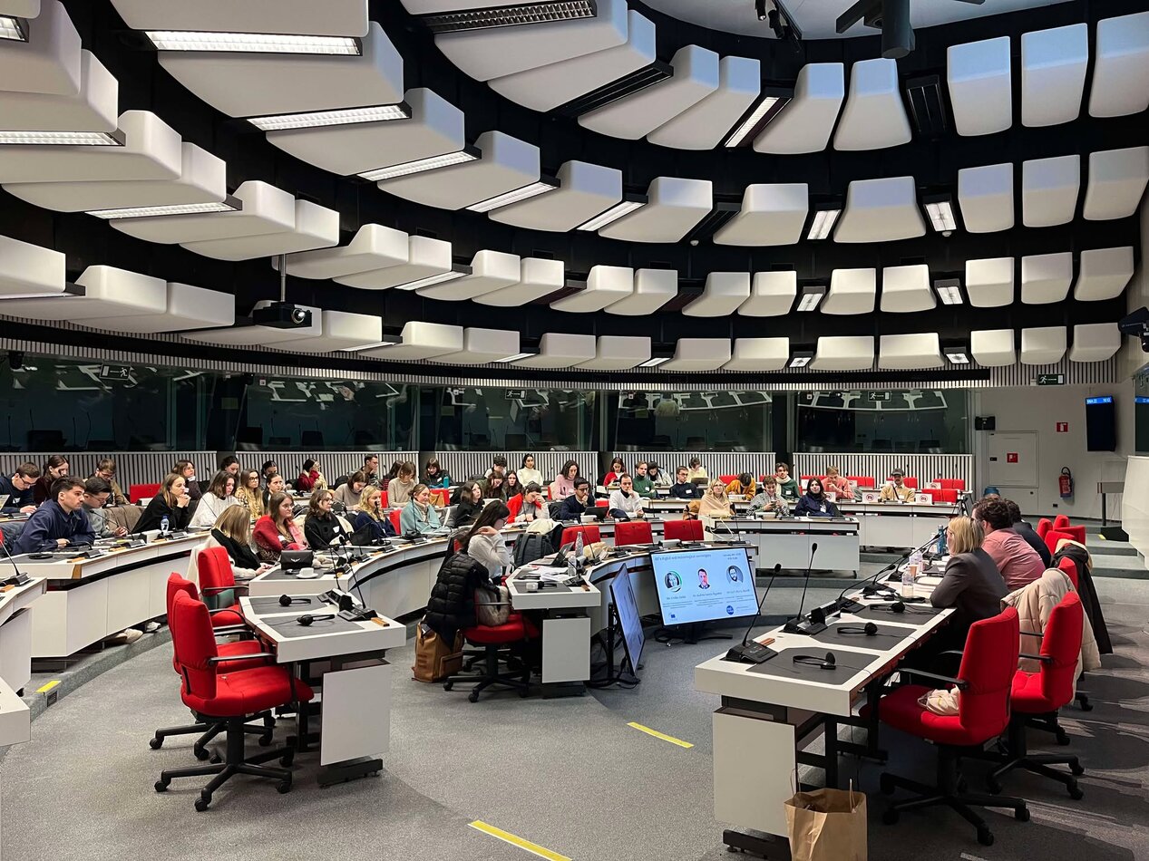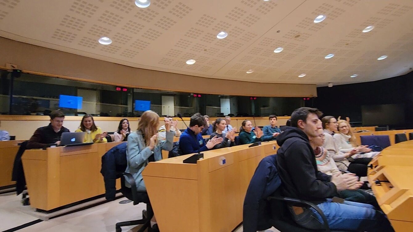 Le programme a démarré avec une conférence au Parlement européen à propos de la loi sur l’intelligence artificielle de l’UE avec l’eurodéputé allemand, Axel Voss. Un groupe d’étudiants a ensuite restitué devant un jury de fonctionnaires un travail sur « Le discours comme un dialogue : écouter et répondre aux 18-25 ans dans la campagne institutionnelle des élections européennes de 2024 ».